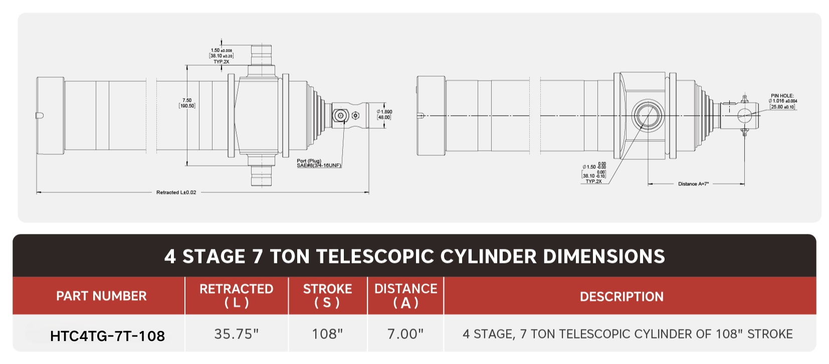 "HTC4TG-7T-108", 4-astmeline, 7 tonni 108-tollise käiguga teleskoopsilinder